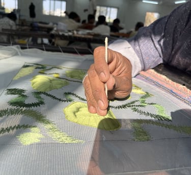 Inside the ANOM atelier, every garment moves through the careful hands of pattern masters, embroidery artisans, and finishing specialists. Each detail is studied. Each surface is considered.