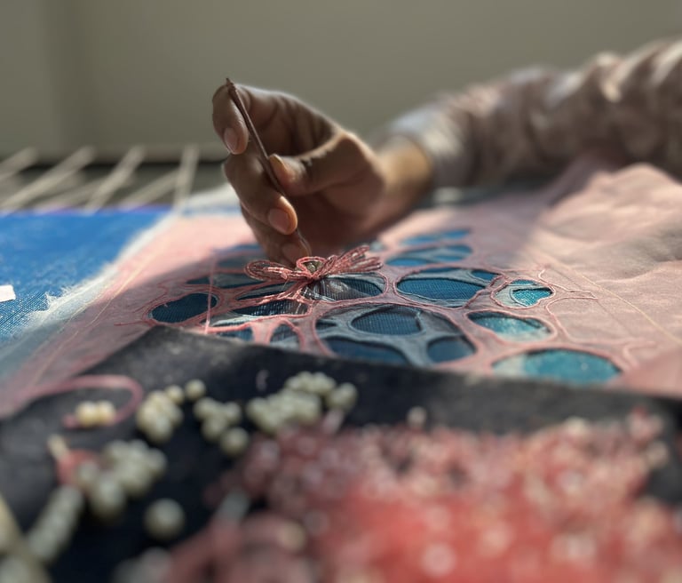 We work with, Hand embroidery developed with technical precision, Structured tailoring that honors form, Finishing that withstands time.